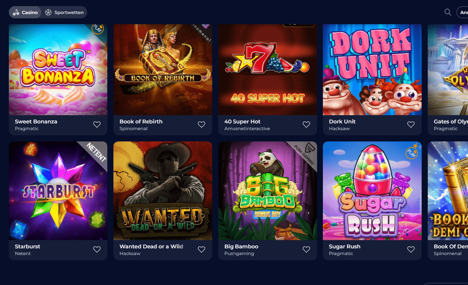 NineCasino unterteilt seine Spielautomaten in Kategorien wie neue Slots, Buch-Slots und Bonuskauf-Slots, um Ihnen die Navigation durch eine so umfangreiche Spielbibliothek zu erleichtern. Sie können die Suchfunktion verwenden, um bestimmte Spiele zu finden, und Sie haben auch die Möglichkeit, Spiele nach bestimmten Entwicklern zu filtern.