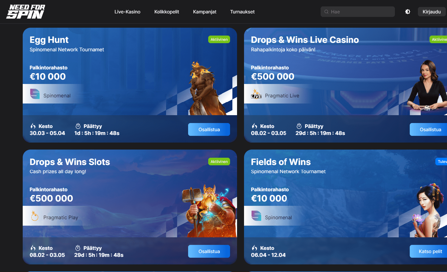 Kaikki nauttivat rullien nopeasta pyörityksestä, erityisesti kaikki kolikkopelien harrastajat. Ja mitä tulee heidän kolikkopelivalikoimaansa, Need For Spin ei tuota pettymystä. Sen lisäksi, että ne tarjoavat tunnettuja RNG-kolikkopelejä, ne tarjoavat myös laajan valikoiman Megaway- ja Bonusostomahdollisuuksia. Vaikka heidän nykyinen joukkueensa on melko hyvä, olisi ollut ihanteellinen, jos he olisivat tuoneet mukanaan muutaman edistyneen.
