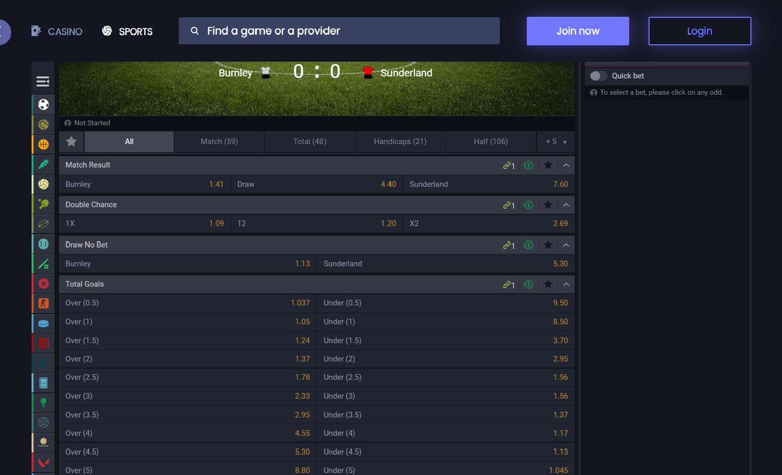 Tebwinillä markkinoiden syvyys ei ole huolenaihe. Jalkapallon vedonlyöjät ovat iloisia kuullessaan, että heillä on valittavanaan yli 500 vedonlyöntiä useimpiin korkean profiilin otteluihin sellaisissa liigoissa kuin Mestarien liiga, Valioliiga ja Eurooppa-liiga. Tutkimusten mukaan jalkapallon ja muiden urheilulajien kertoimet Tebwinin urheiluvedonlyöntisivustolla ovat yleensä keskellä pakettia – eivät parhaiden joukossa, mutta eivät myöskään huonoimpien joukossa.