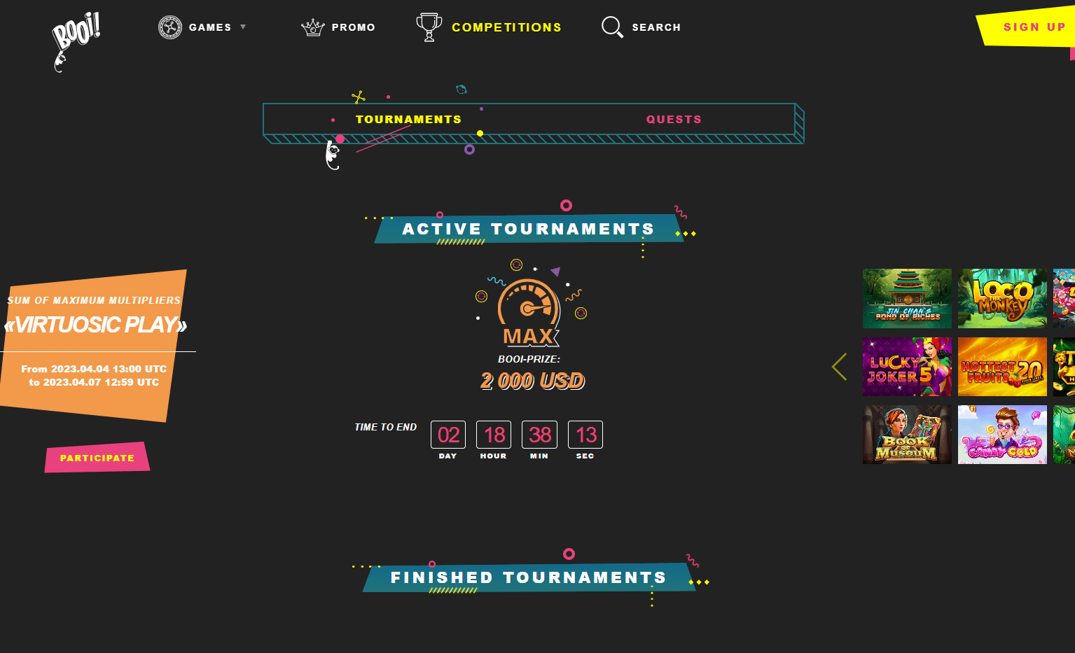 BoiCasino har ofte spilleautomatturneringer, og ved å satse ekte penger på bestemte spill, kan spillere samle turneringspoeng i tillegg til ekstra midler eller andre belønninger. Kasinoet tilbyr også oppdrag, der lånetakerne må utføre en rekke oppgaver for å vinne bonuser. I motsetning til turneringer mottar alle deltakerne de samme premiene, men fordi det er et begrenset antall premier, blir de første spillerne som fullfører alle oppgavene premiert.
