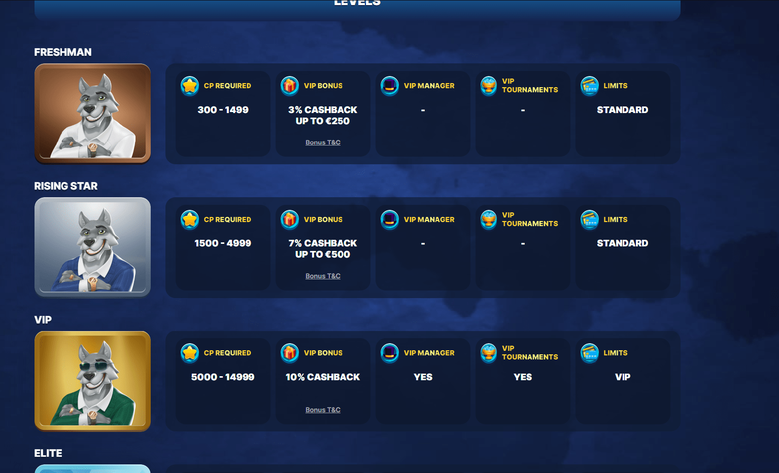 Alle gadgets er mobilklare for casinoet vårt. Det fungerer med iOS-, Android-, Windows- og Mac-datamaskiner. Du trenger ikke laste ned noen programvare for å spille spillene deres. Tysk, engelsk, russisk og Suomi er bare noen få av språkene som SlotWolf har mobilversjoner tilgjengelig på. Brukergrensesnittet i nettleseren er ganske intuitivt og enkelt å bruke. Alt er enkelt å finne. Fanene for spill, kampanjer, turneringer og VIP er plassert øverst på hjemmesiden. Du kan se et sammendrag av deres VIP-program og spillsjangre de har tilgjengelig ved å rulle nedover. Vanlige spørsmål, Live Chat og T&C er alle plassert nederst.